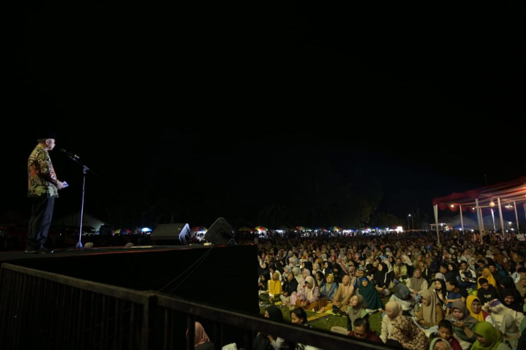 Banjarnegara – Konser kebangsaan GeMa Merah Putih bareng penceramah kondang Miftah Maulana Habiburrahman atau Gus Miftah di lapangan Desa Purwasaba Kecamatan Mandiraja dihadiri ribuan masyarakat dari berbagai penjuru Kabupaten Banjarnegara dan sekitarnya pada Minggu malam (13/7/2025).
